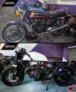 Olá, pessoal. Nesse post, vamos falar como foi o processo de customização de mais uma Cafe Racer realizada aqui na Oficina dos Tons, dessa vez em uma CB 400. Esse será um post mais longo, mas acreditamos que as fotos e informações a seguir possam ser úteis de alguma forma para quem está realizando (ou pretende realizar) um projeto como esse ou se interessa em ler sobre Cafes.