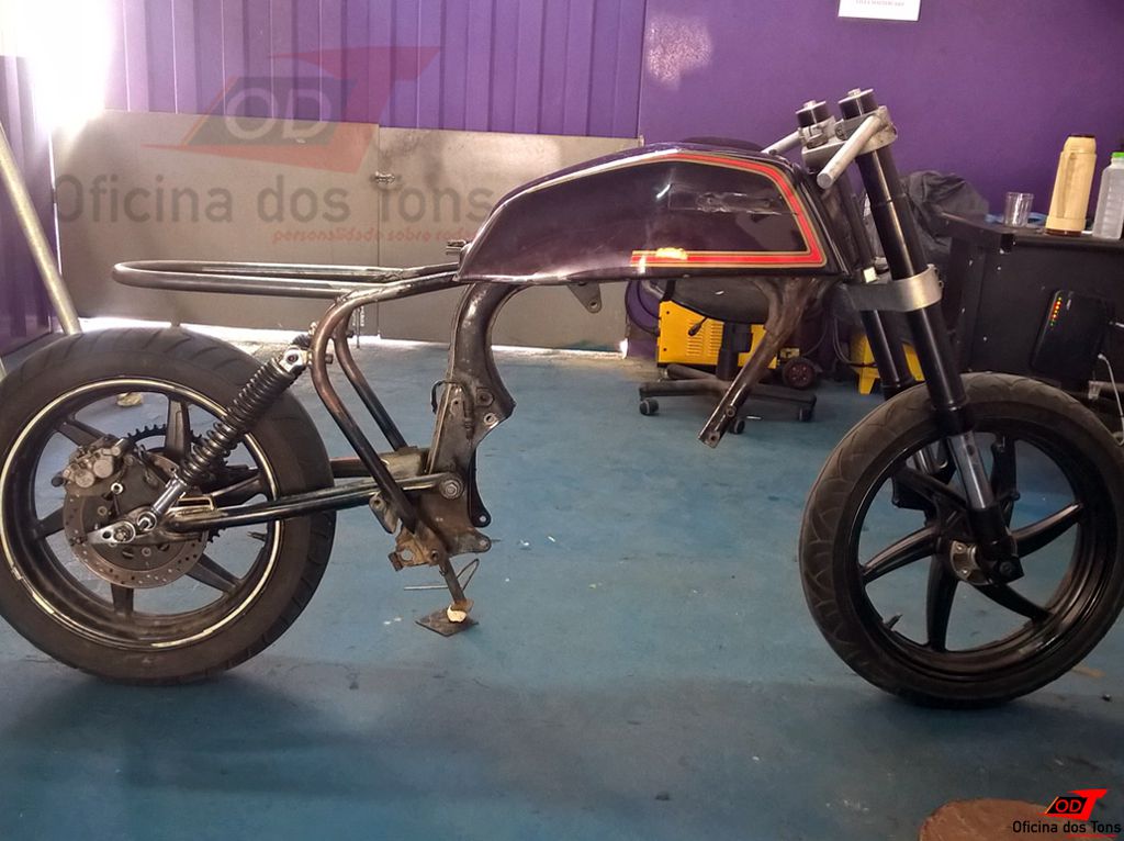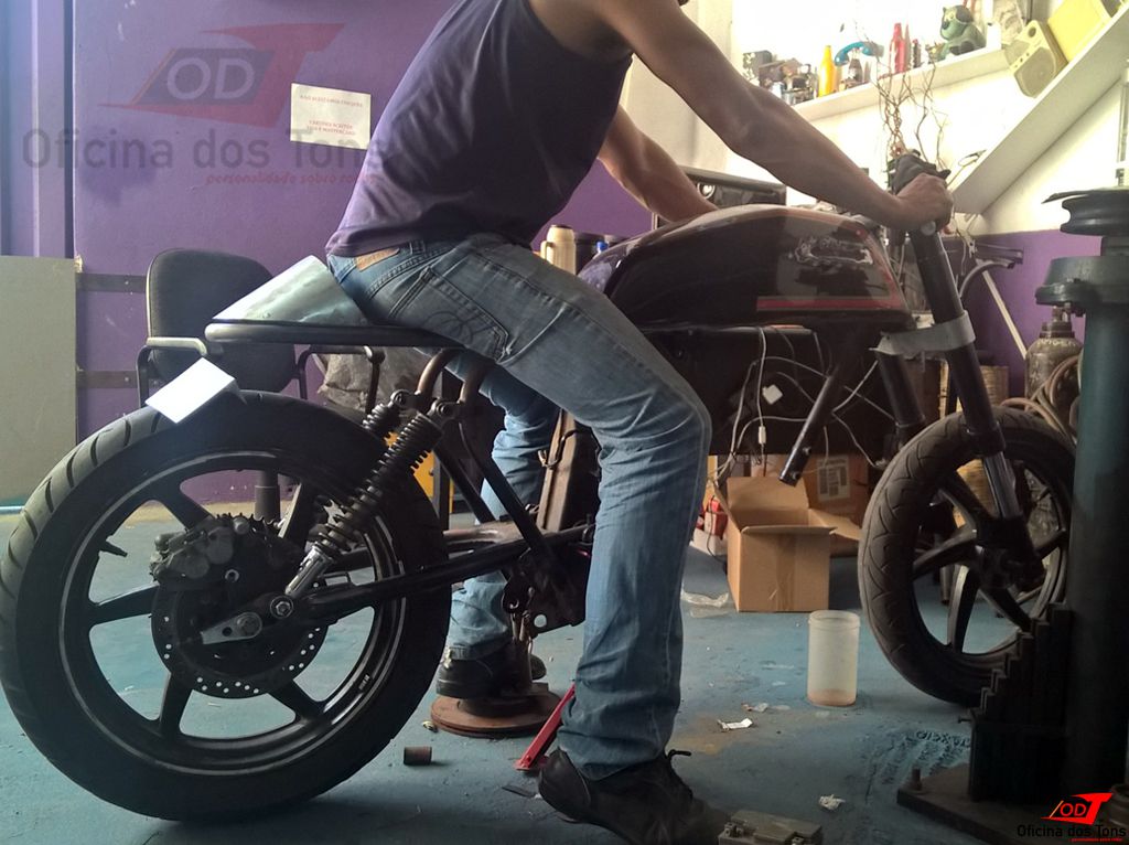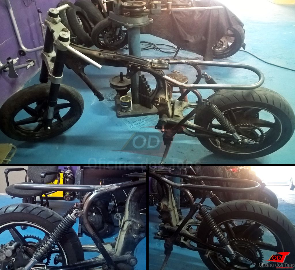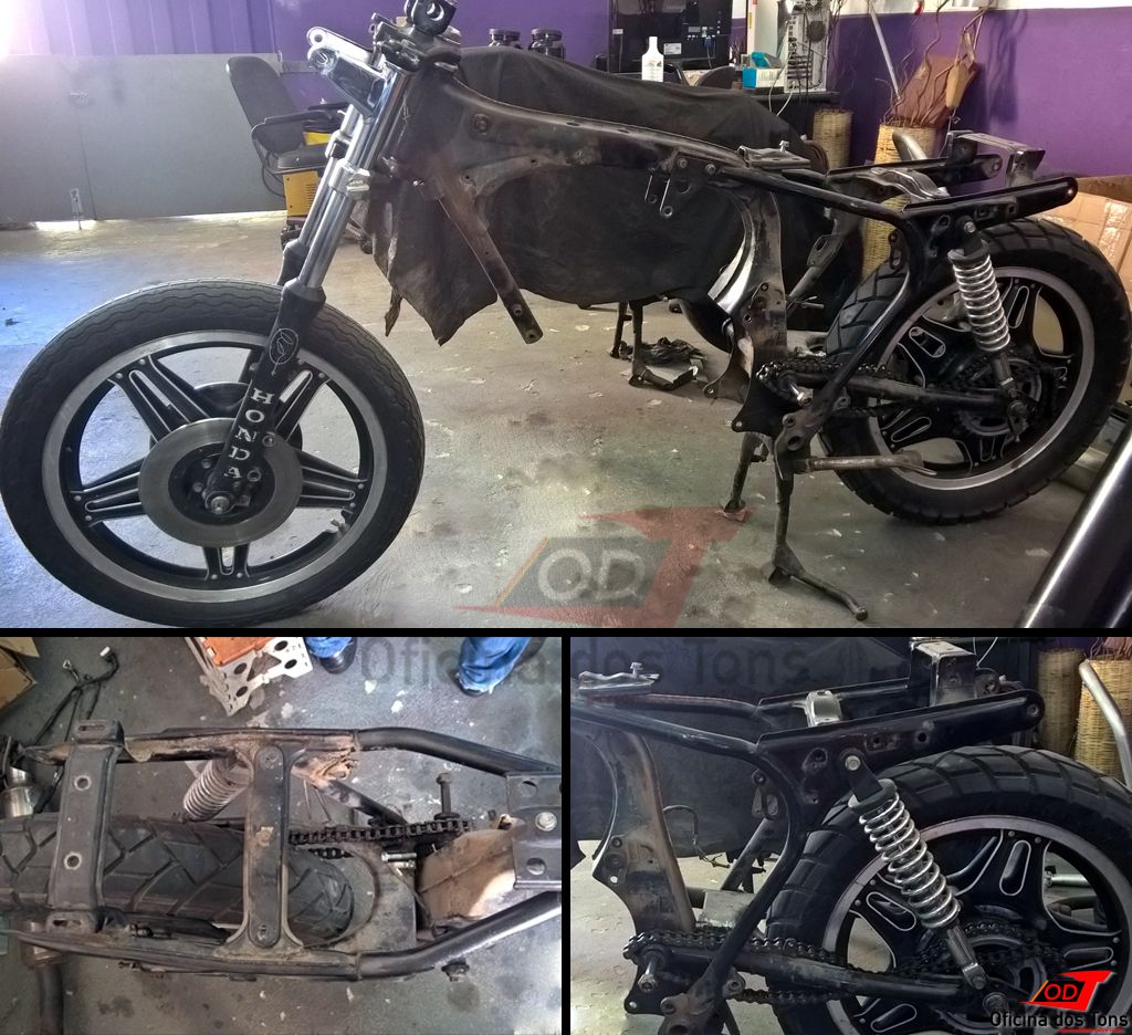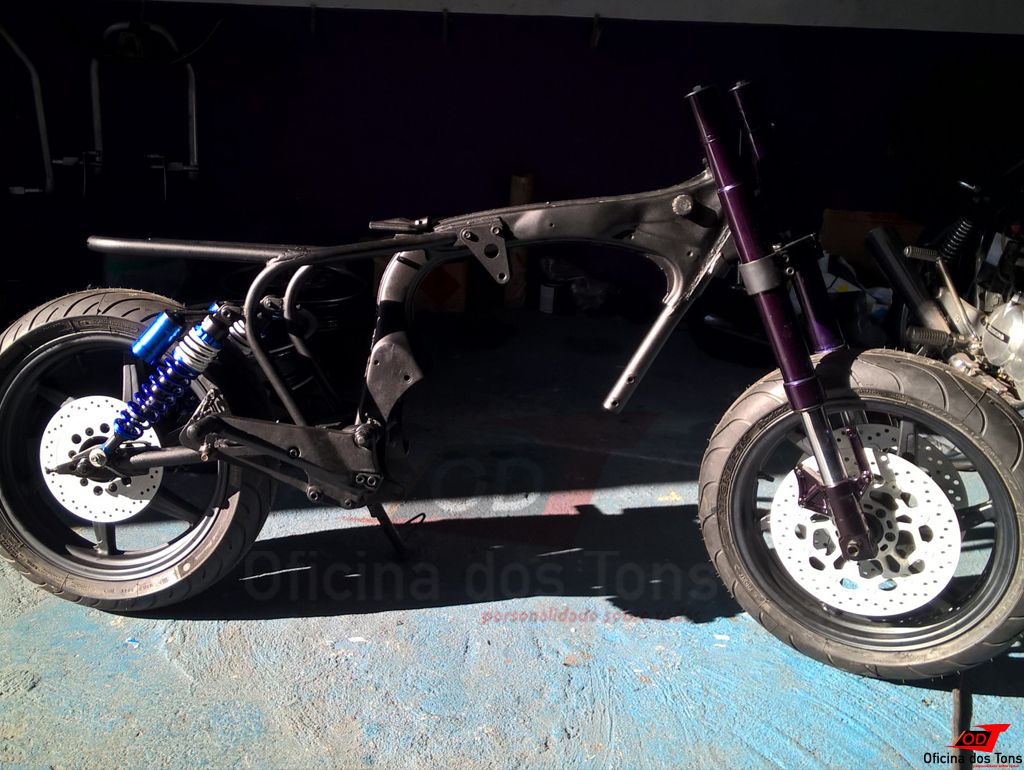 E a parte prática propriamente dita iniciou-se com as modificações na parte estrutural da moto.