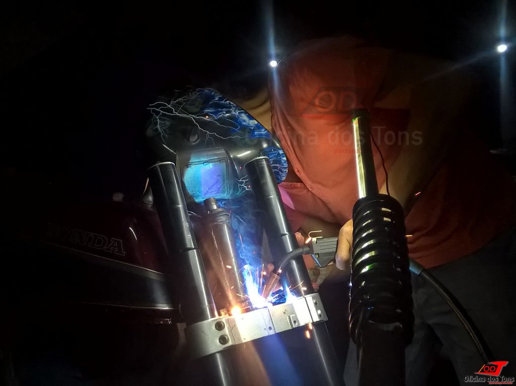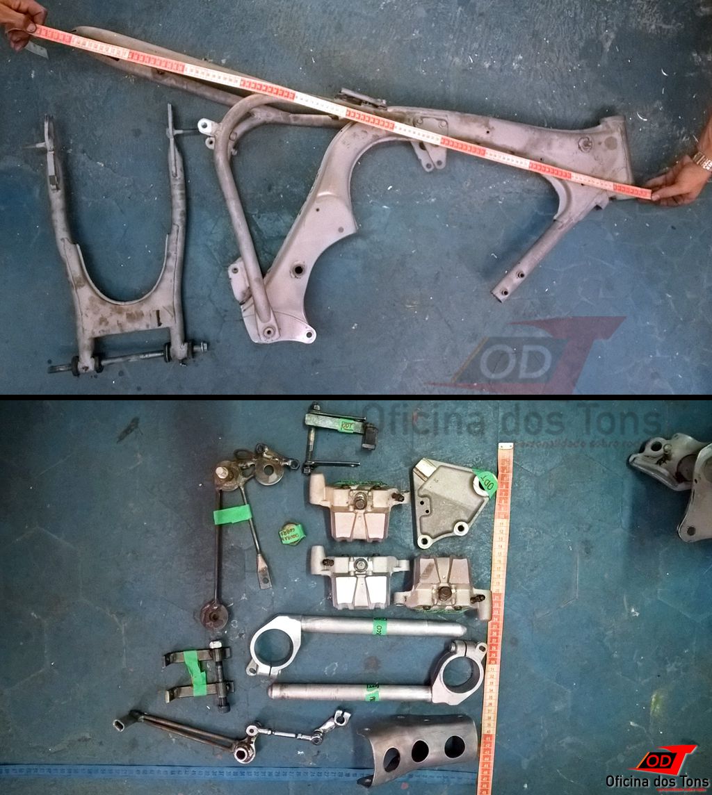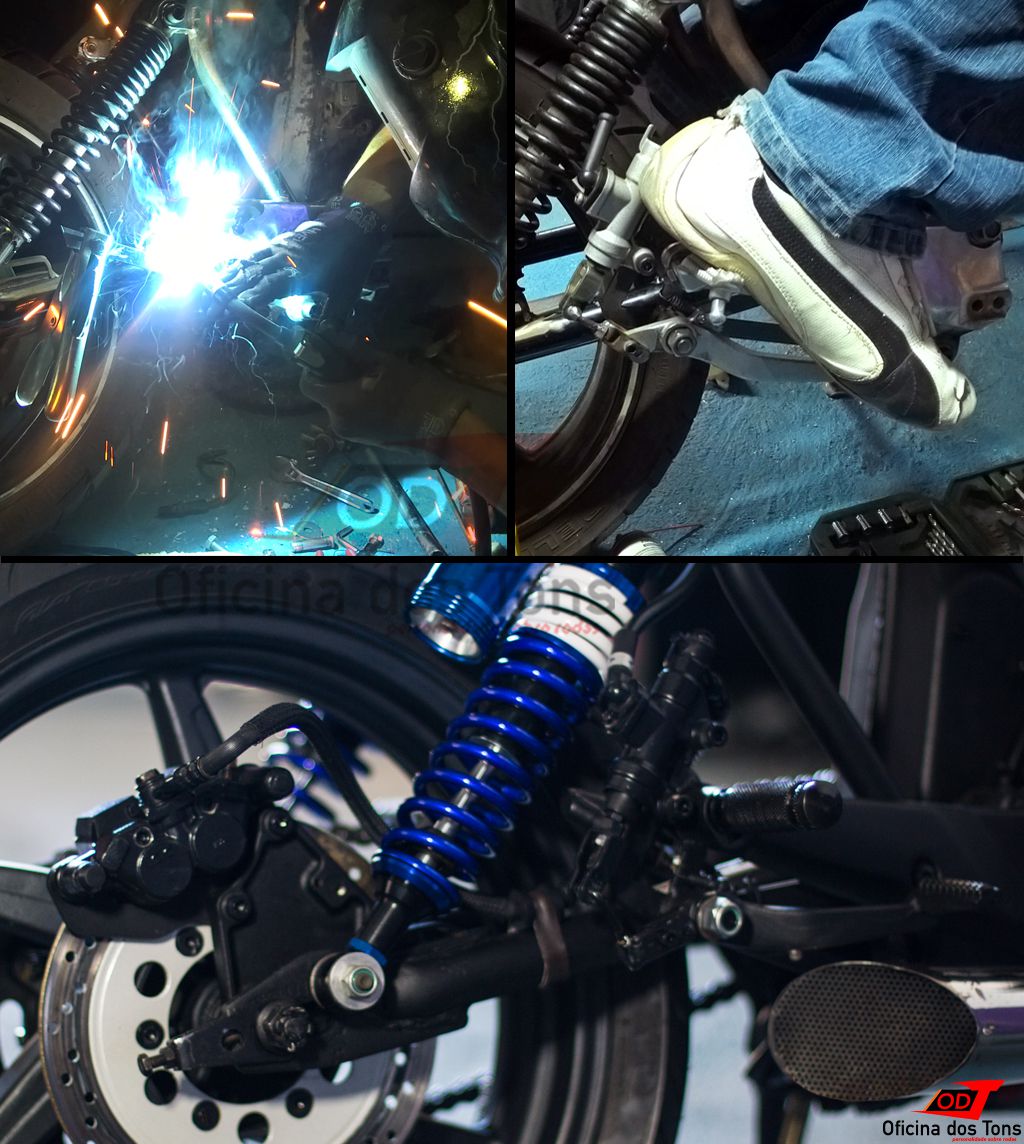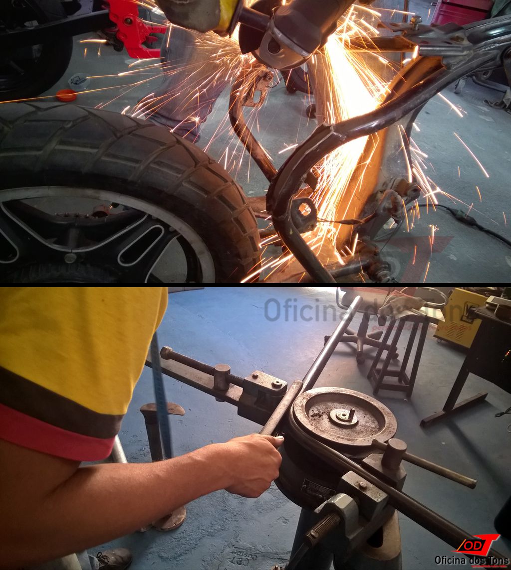E a parte prática propriamente dita iniciou-se com as modificações na parte estrutural da moto.