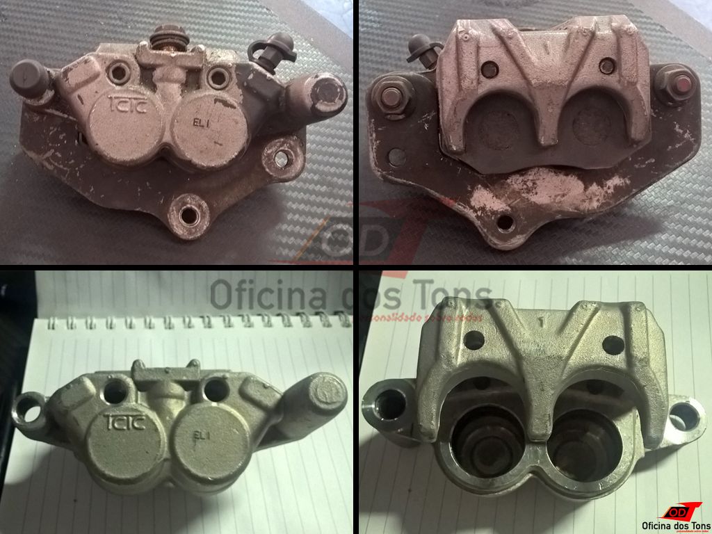 Além das modificações, durante todo o processo foi realizado um trabalho cuidadoso de limpeza e restauração das peças usadas que seriam mantidas e adaptadas na moto.