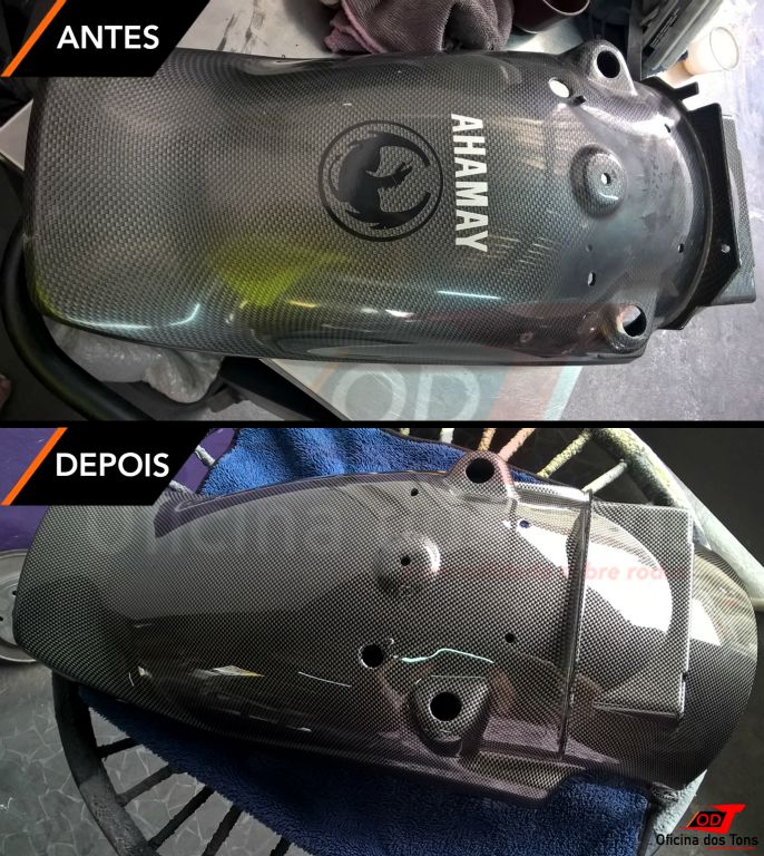 Seguiram-se muitos dias de cálculos, desenhos e testes no computador para se chegar à concepção final do novo ‘subchassi’ e também de uma nova balança para a moto, adaptada para receber suspensão monoshock e pneu 150. Eles foram criados do zero pela Oficina dos Tons, e portanto você não vai encontrar nada igual em projetos de outras oficinas. Com as peças recortadas em CNC, foram outras tantas horas de gabaritagem, alinhamento e soldagem. Tudo muito bem planejado, primando em primeiro lugar a segurança, mas pensando também no design e na beleza dos desenhos e curvas.