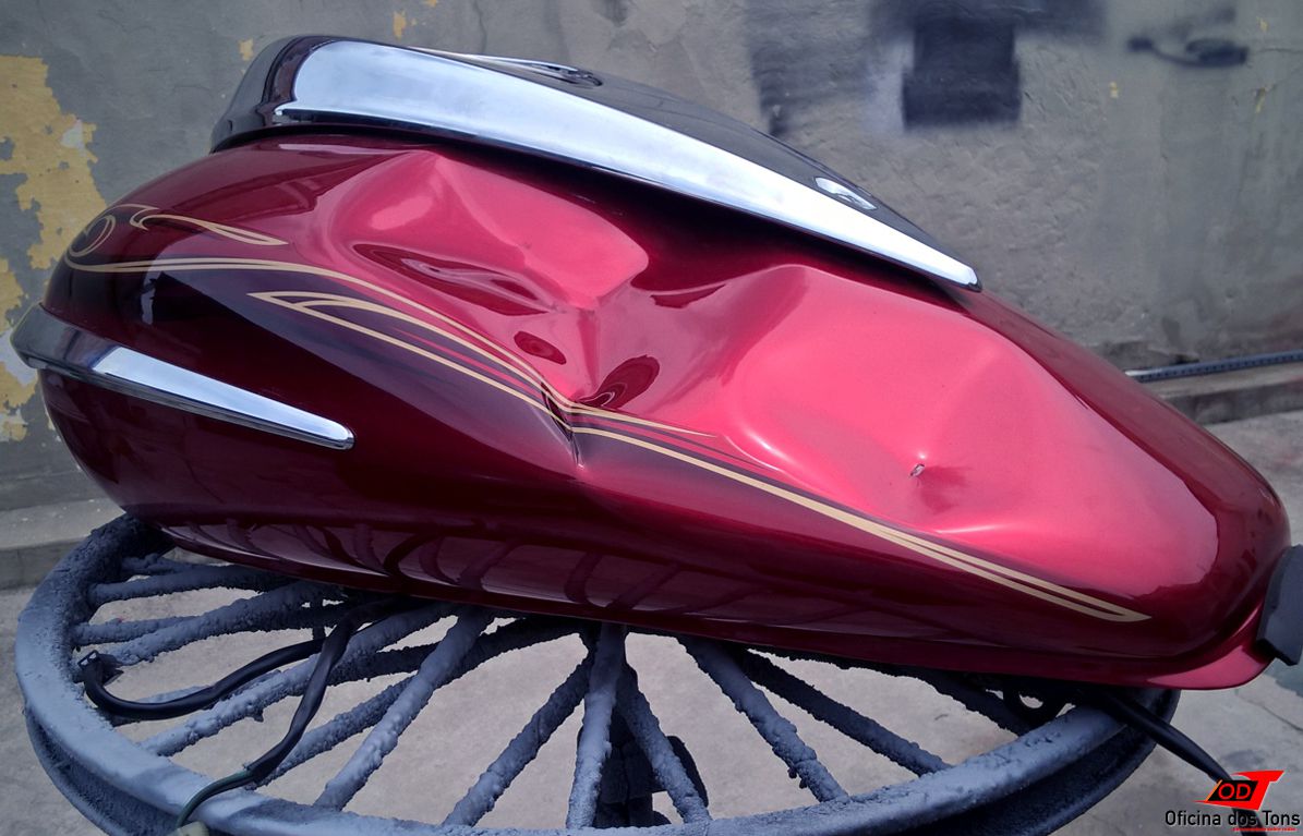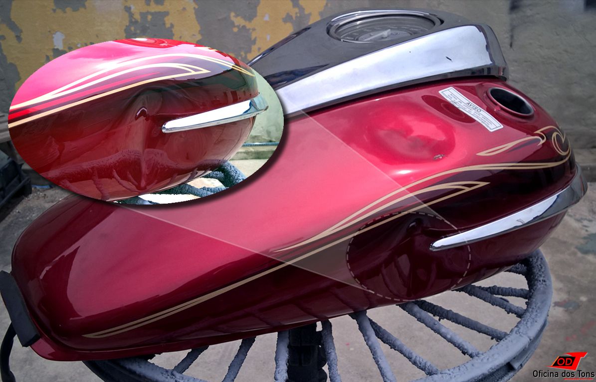 Assim como nesse caso, é possível restaurar tanques e carenagens de moto com diversos tipos de avarias. Lógico que em alguns casos a lanternagem pode não ser a opção mais viável financeiramente, e em outros a peça pode ter sido danificada de tal forma que não permita um resultado final 100% ou não fique mais segura para uso.