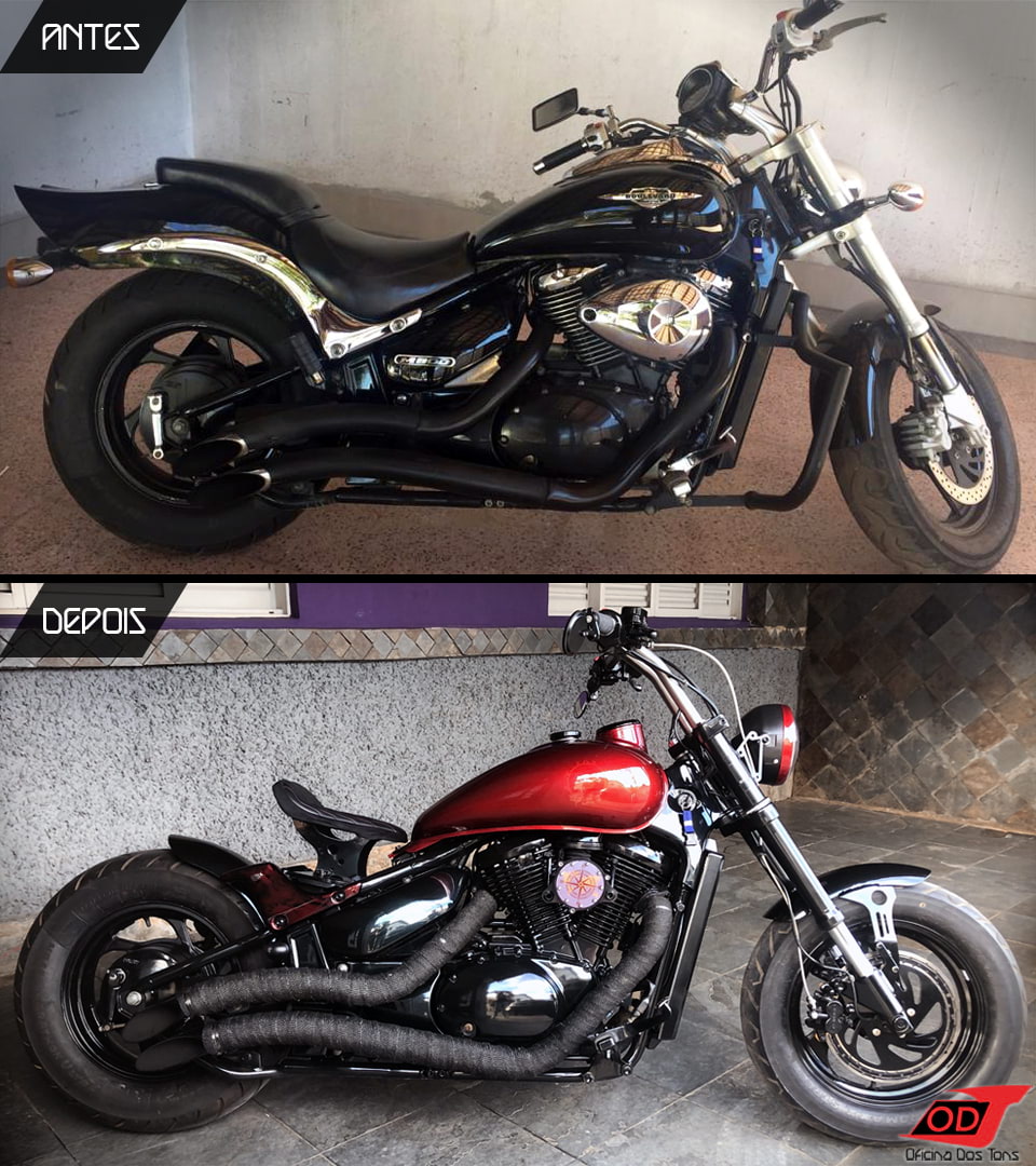 Olá, pessoal, tudo bem? Gostaríamos de divulgar mais um projeto de customização bobber realizado aqui na Oficina dos Tons em uma Suzuki Boulevard M800. Anteriormente, nós já fizemos a customização de outras duas motos desse modelo, e caso ainda não tenha visto, você pode conferir o projeto 1 clicando aqui e o 2 aqui. Acompanhem agora o desafio de criar mais um exemplar diferente dos anteriores feito sob medida para o nosso cliente. Esperamos que gostem!